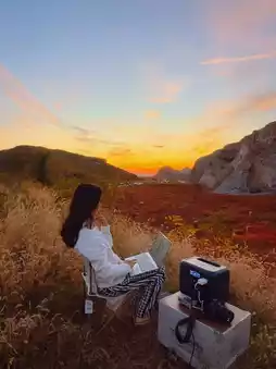 🐎 Super large lawn camping: Here, you can camp on a super large lawn and enjoy the magnificent scenery of large red leaves in the valley. The landform here is very special, as if you have entered a grand canyon 🏕