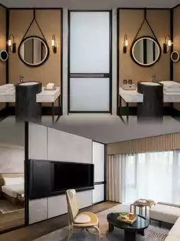 I redeemed points for a basic room, but was generously upgraded to a suite. The size isn't big but it has everything you need. The room offers a view of the river, but it's not that impressive... What's particularly worth mentioning is the square bathtub in the suite, which is very comfortable, big enough to sit or lie in, and larger than 90% of the bathtubs in hotels I've stayed in. There are two swimming pools, indoor and outdoor, but only the indoor one is open in winter. There's also a children's playground.