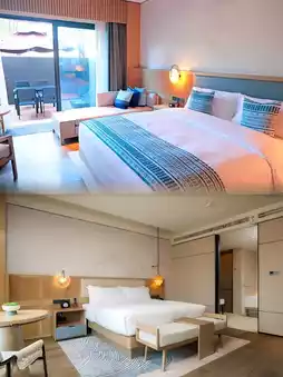 The room layout is even more eye-catching✨ The space is spacious and bright, and the layout is very cozy and comfortable. The bedding is soft and skin-friendly, and lying on it feels like being surrounded by clouds, so a good night's sleep is not a problem😴 The room is fully equipped, with modern facilities and Dong-style decorations, showing the hotel's attention to detail. From the window, you can see the distant mountains and rivers or the Dong-style buildings, which is a great visual enjoyment🌈