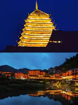 - *"Zuo Mei" Performance & Sanjiang Drum Tower*: Don’t miss the *"Zuo Mei"* evening show at the county’s "Bird’s Nest" theater—a grand outdoor Dong ethnic song-and-dance spectacle blending stunning lights, choreography, and cultural traditions that showcase Dong courtship customs. Right across is the Sanjiang Drum Tower, the tallest of its kind in Dong regions, which becomes spectacularly illuminated at night. Climb up for a panoramic night view of the town.
