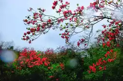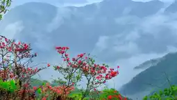 Rhododendron Sea: Climb Daopeng Mountain, the entire hillside is full of blooming rhododendrons, forming a sea of flowers, colorful.