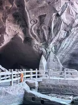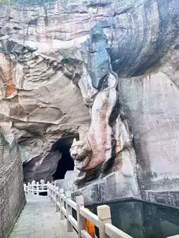 It is a quarrying relic from the Song Dynasty. It is the home of mountain people such as quarrymen, pirates and islanders. The caves are very shocking. There are also many stone windows carved by locals. The patterns are very beautiful, and each one is different. There are also curved bridges, flowing water, koi, and a large waterfall hanging down.