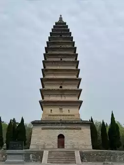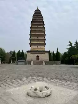 The Baolun Temple Pagoda has been preserved to this day, and Baolun Temple already existed during the Southern and Northern Dynasties. In the first year of the Sui Renshou era (601 AD), the monk Daoxiu built a wooden pagoda within the temple by the order of Emperor Wen of Sui to enshrine the sarira, which was later destroyed. In the first year of the Tian Sheng era of Emperor Renzong of the Northern Song Dynasty (1023 AD), the wooden pagoda and the temple were rebuilt, and it was destroyed by the Jin troops in the first year of Jingkang. In the 17th year of Dading of the Jin Dynasty (1177 AD), the monk Zhixiu rebuilt it into a thirteen-level stepped, octagonal brick pagoda with a hollow core, officially named 'Baolun Temple San Sheng Sarira Pagoda', with a height of 26.5 meters.