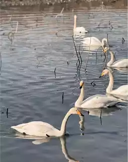 Walk along the lakeside path with light steps and explore this dreamland. Along the way, you will encounter swans in various shapes. Some are foraging, while others are flying high. Every scene is mesmerizing.