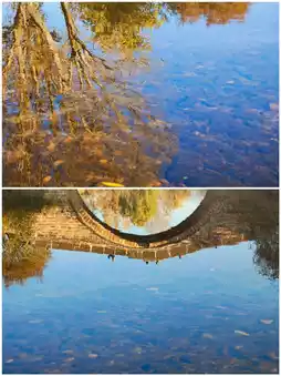 Distant mountains, villages, rice fields, woods, ancient bridges, rivers