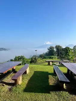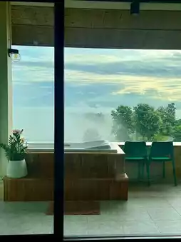 The spacious rooms feature bathtubs with mountain views 🛁✨, perfect for soaking in the soothing bubbles amidst nature. Breakfast is served in a lovely and delicious basket 🍳🥗🥖. The cafe offers a relaxing coffee corner with a panoramic view of the sea of mist, guaranteed to leave you wanting to capture the beautiful scenery 📸.