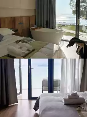 The private hot spring is very chill, the pool is a good size, the water temperature is comfortable, the water is clear, and it's very relaxing to enjoy the hot spring while looking at the ocean view~