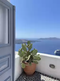 This small and exquisite church by the sea in Fira is your ideal photo spot.📸