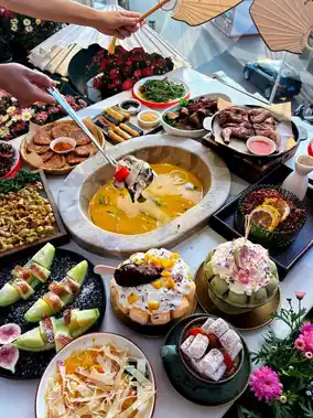 **He Xiaoyu Stone Pot Fish:** Under the glow of the sunset, sit in the restaurant and enjoy the delicious stone pot fish 🐟 while admiring the lakeside sunset outside the window 🌅—it’s pure bliss! Don’t miss other specialties like Copper Pot Potato Rice 🍚 and Crispy Pork, each dish guaranteed to delight your taste buds. 😋