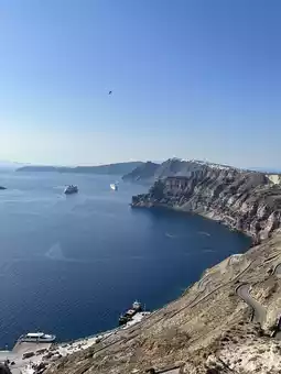 So, apparently half of the original island sunk after a massive earthquake in the past, and so now the island look just like a massive โcroissantโ where the three main towns are dominating the edge of the Caldera volcano (where the explosion and earthquake + tsunami originated from).