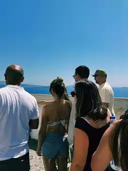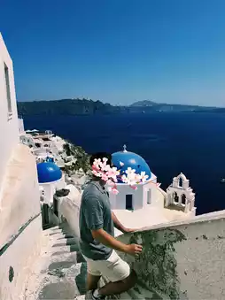 Seeing this view in person, which I had only admired in photos, was more than just visiting a tourist spot—it became a moment etched deeply in my heart. As the sky turned crimson at sunset, the blue domes revealed a different kind of charm, making me lose track of time.