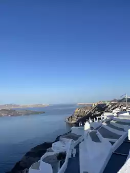 • Fira – lively town with shops, cafés, and cliffside views 🏞️