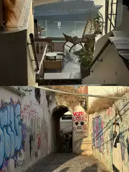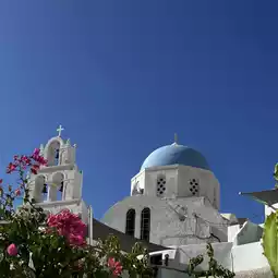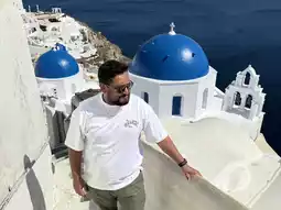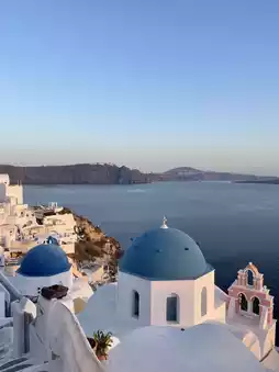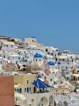 Oia Village, where the morning sunlight seeps through the alleys, is equally charming during the day. The white walls and blue roofs shine brightly, welcoming travelers with vibrant colors throughout the village. As you stroll through the narrow alleys, you'll come across quaint shops and cafes, and find perfect spots for taking photos with the sea as a backdrop.