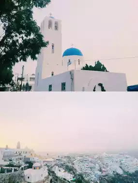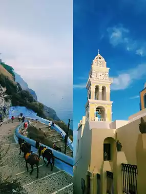 Walking through the alleyways of Oia, the scent of the sea and the sunlight reflecting off the white walls evoke a uniquely Greek atmosphere of leisure. Handmade decorations hang from every small shop, and a seagull flies slowly over the blue rooftops. Each scene felt like a scene straight out of a postcard.