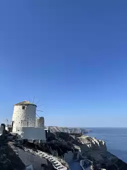 As I slowly walked toward the end of the village, the sea unfolded beneath the cliffs, and the white houses lined up one after another. The moment I gazed upon this landscape, I understood why people call Santorini the "Island of Dreams." It was a tranquil place, as if time had stood still, yet it was filled with life.
