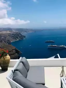 Perched on stunning volcanic cliffs, Thira is the island’s lively capital filled with breathtaking caldera views, elegant cafés, and charming whitewashed lanes ✨. Explore its vibrant markets, admire the blue-domed churches, and unwind while the sunset paints the sky in dreamy hues 🌇. A perfect blend of Greek tradition and island elegance! 🌸