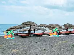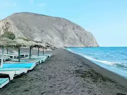 Renowned for its striking black sand and clear blue waters, Perissa Beach is ideal for relaxing, swimming, and enjoying water sports 🏄♀️☀️. With cozy beach bars and cafés along the shore 🍹, it’s the perfect place to unwind while soaking in the beauty of the Aegean sunset 🌅💫.