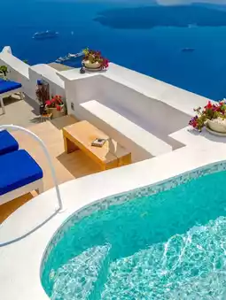 Perched atop the caldera cliffs, Imerovigli is renowned for its panoramic Aegean views, whitewashed houses, and peaceful vibe ✨. Enjoy romantic sunsets, leisurely strolls through charming streets, and cozy cliffside cafés 🍷🌿. A tranquil haven for those seeking beauty and serenity! 💫