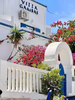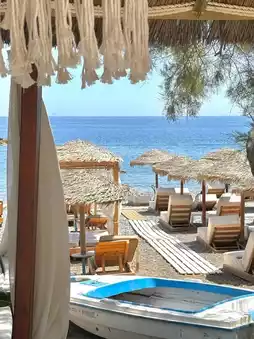 Famous for its volcanic black sand and crystal-clear waters, Kamari Beach is perfect for relaxing, swimming, and enjoying water sports ☀️🏄♂️. The beachfront is lined with cafés, restaurants, and shops 🍹, making it ideal for a scenic stroll or a sunset view over the Aegean Sea 🌅. A must-visit for beach lovers!