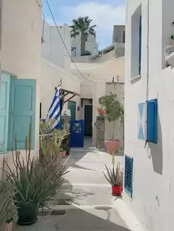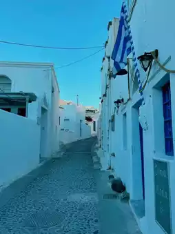 Quiet and charming, Megalochori is known for its whitewashed houses, winding cobblestone streets, and serene courtyards โจ. Visit historic churches, relax at local tavernas ๐ท, and experience the authentic, laid-back Santorini lifestyle ๐ธ. A perfect escape for culture and tranquility!