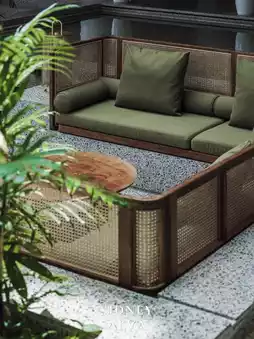 You'll find hand-fired clay tiles and abundant rattan and bamboo weaving in the local Li ethnic group style,