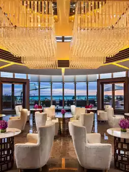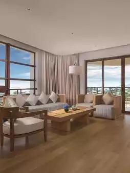 Imagine waking up to sun-soaked vistas with floor-to-ceiling windows framing mountain views 🏞️. Deluxe King Rooms boast a JBL alarm clock speaker to kickstart your day with tunes, and a Nestle capsule coffee machine for that perfect morning brew ☕. The Hilton-standard automatic toilet adds a touch of tech-savvy comfort, while a variety of pillows on a 1.8m bed ensures dreamy slumber.