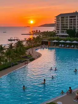 The sand is as fine as flour, and the sea is a clear blue. The hotels here are super luxurious, like the Horizon Resort & Spa, which has great family-friendly facilities, perfect for families with kids. There's also the Ritz-Carlton, which has a great vacation vibe and attentive service.