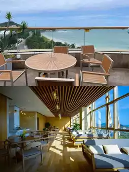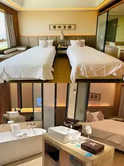 The guest rooms are a highlight of the hotel, with spacious and bright rooms that blend modern fashion with marine elements. All rooms are equipped with high-end bedding to ensure a comfortable sleep experience for guests. The bathrooms are designed with separate wet and dry areas and feature high-end bathroom facilities. Some deluxe ocean view rooms come with large private balconies furnished with lounge chairs, allowing guests to relax with a drink while enjoying the stunning ocean views and leisurely moments.