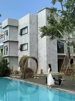 The independent courtyard is hidden between the mountains and the sea, with a strong sense of privacy.