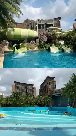 3. Wave Pool🌊: Simulated waves roll in at regular intervals, just like being at the seaside. Whether you're bouncing along with the waves or lying on a float and drifting, it's incredibly relaxing. There's also a stage nearby with hot dance performances💃 from time to time. Playing in the water while watching the show creates a fantastic atmosphere.
