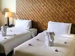 The room type we stayed in was a terrace room, with a spacious 60 square meters. The interior is decorated with dark wood furniture, patterned headboards, and artworks full of the local Li and Miao ethnic culture of Sanya, giving it a very high-quality feel.
