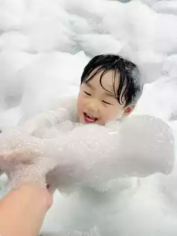 It's time for the children's favorite pool bubble battle! Teacher Big Tree and Teacher Elephant took the children to play with bubbles in the pool, chasing and frolicking in the water, with constant laughter. The scene of bubbles flying was like a fairy tale world, and even adults couldn't help but want to join in.