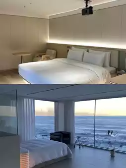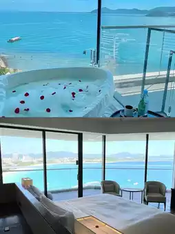 √ Panoramic floor-to-ceiling windows: Each room is equipped with extra-large floor-to-ceiling windows with a 270° panoramic sea view. You can embrace the entire sea while lying on the bed. The curtains are automatically adjusted, allowing you to enjoy a space that combines privacy and openness. √Interior with marine elements: The room is dotted with marine decorations, from the wave-textured headboard to the coral-patterned pillows. Every detail reveals the love and tribute to the sea.