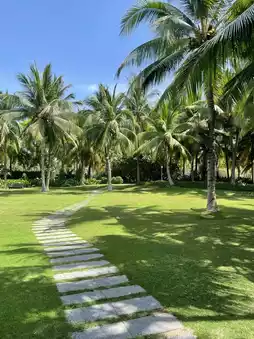 Walking along the path, the coconut grove beach and the swimming pool are cleverly connected, forming a unique sense of edge. The clear pool water sparkles under the sunlight, and contrasts with the sea in the distance, forming a beautiful picture. On the way to the beach, you might come across a few cute little squirrels playing and frolicking among the branches, adding a touch of vitality and vigor to this peaceful environment.