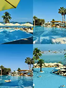 A row of palm trees 🌴 and a huge swimming pool 👙