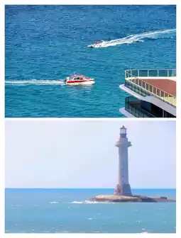 2️⃣ Sea Ladder: Stairs extending to the sea, when the tide rises, it seems to lead to the sky, shooting upwards + wide angle directly seals the gods