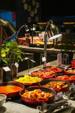 The JW Kitchen restaurant on the first floor is an Iberian carnival of taste. For breakfast, the chef combines Hainan’s local flavors with classic Spanish dishes: freshly opened coconuts are infused with espresso to make “Island Affogato”, and Sanya yellowfin tuna marinated in capers is served as tapas, served with freshly baked churros and Spanish dough sticks. Dinner is a feast of land and sea - slow-cooked Iberian black pork ribs wrapped in Sanya wild honey, lobster paella dances with saffron and Hainan bell peppers, and the almond frosting cake on the dessert table is juxtaposed with mango sticky rice, accompanied by a glass of sherry, it seems that even the sea breeze has a slightly sweet fragrance.
