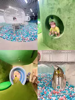 Indoor playground with ball pits, cartoons, climbing nets and slides. My kid even invited others to play🤭 Pure joy💖