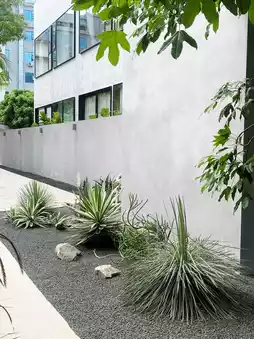Minimalist concrete walls paired with greenery,