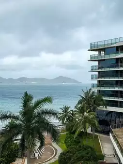 Located in the Half Moon Bay area, adjacent to Dadonghai Beach, just a 10-minute drive from Luhuitou Park and 30-minute delivery time for city takeout, this hotel is a tranquil vacation hub amidst the hustle and bustle. Though the coastline features rocky landscapes, it’s perfect for evening seaside strolls, with the coastal walkway radiating romance.