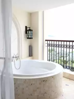 🏠 We stayed in a spacious king room with a large balcony featuring a bathtub—our little one absolutely loved it! Soaking in the tub while watching the sunset over Sanya Bay, every photo looked like a cinematic masterpiece.
