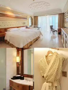 For our 1️⃣st stop in Sanya, we chose this hotel. The lobby instantly amazed us when we entered—walking under the 2,000㎡ Baroque dome, we experienced a unique blend of modern resort living and classical elegance.