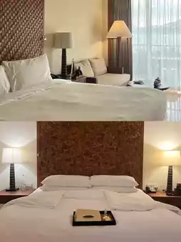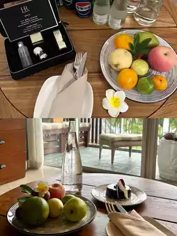 🪟All room types are in small villas, making every stay comfortable with no difference in service. Though the rooms are a bit dated, the amenities are top-notch—like the large glass bottles of Evian water, much more generous than other hotels in the same price range. The turndown service is heartwarming, complete with frangipani hair clips that look great in photos!