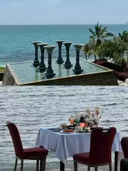 🪄Timeless style with deep cultural charm, offering picturesque views at every turn. The Southeast Asian resort vibe is on point, and the flame trees are stunning. The pools are great, and the sea looks beautifully blue on sunny days—though the beach isn't ideal as it's a bit rough on the feet.