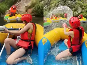 🚗 Rented a car from Sanya to Wuzhishan, arrived at Red Canyon Rafting around 14:00. Tickets are cheaper online—168 RMB/person. The 5km waterway takes about 2+ hours to complete, totally worth it! Bring your own water shoes to avoid renting.