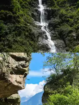 - Feitian Waterfall: About 300 meters high, very spectacular. After getting off, cross the suspension bridge and hike up. There’s a pavilion to rest and enjoy the waterfall view.