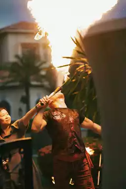 The leaping flames streak across the dusk like shooting stars, painting the sky in vibrant orange-red hues🌅