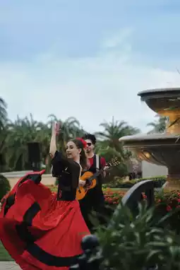 A dancer in a red dress💃🏻 steps into the glow with the rhythm of castanets.