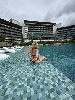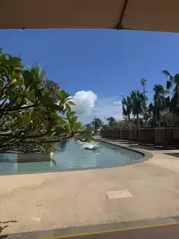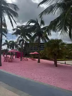 Key information: The hotel is located near the airport, but that doesn't detract from the experience. It's stylish and chic, and the music from the TV series "White Lotus" plays in your head from the moment you step inside. There are amazing restaurants and bars, a huge park area, a large, blue-water pool, friendly staff, and a stunning location with a pink-sand beach.