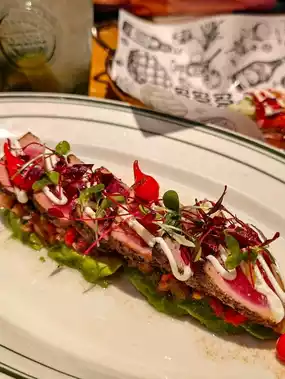 ⬇️ I was captivated by the appetizers. The baguette with smoked salmon (39 yuan) was fresh and aromatic, while the tuna with avocado (39 yuan) was just wow. A crispy crust on the outside, tender raw center inside, all on soft slices of avocado topped with tomato salsa. The combination of flavors made me want to savor it longer.